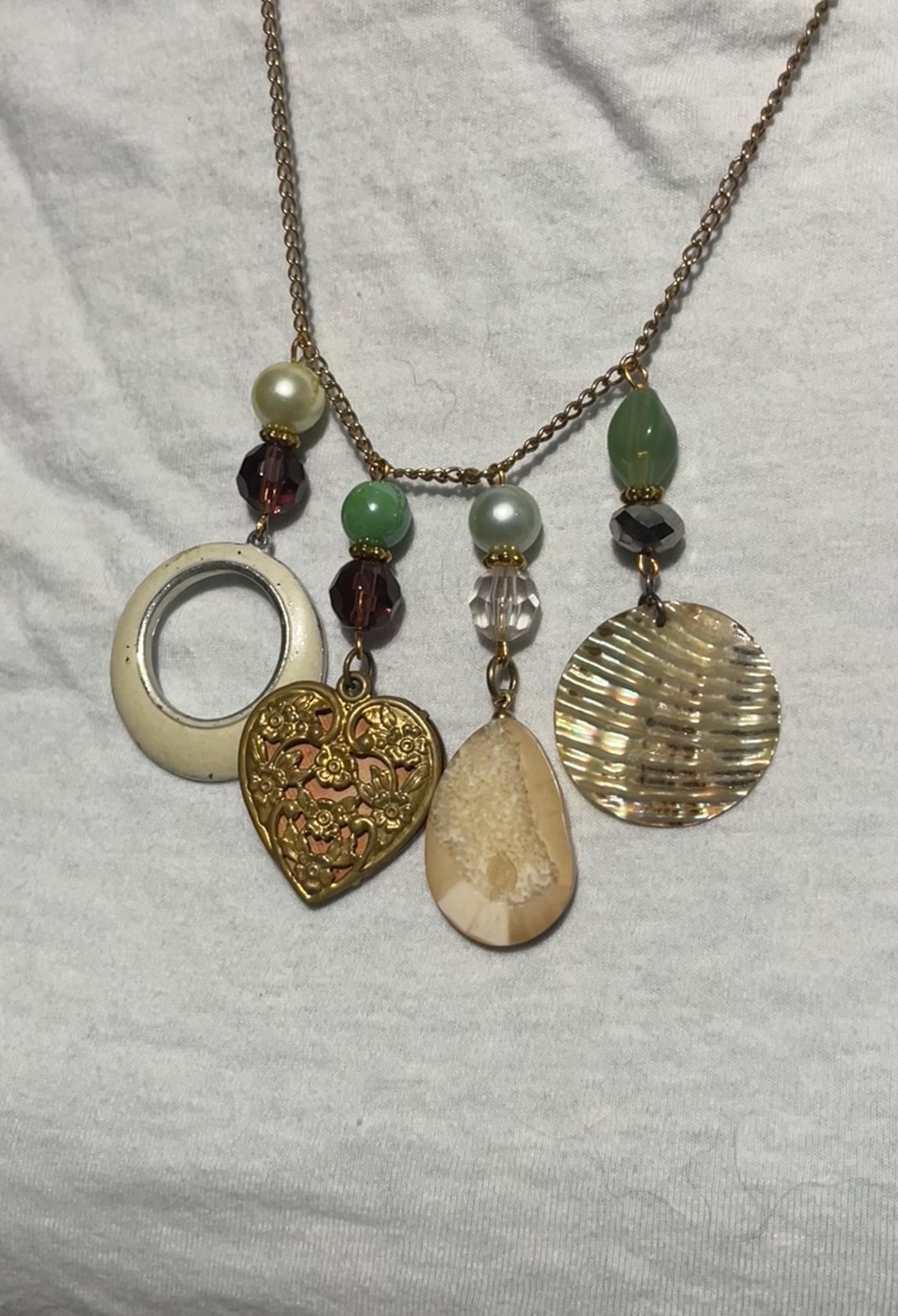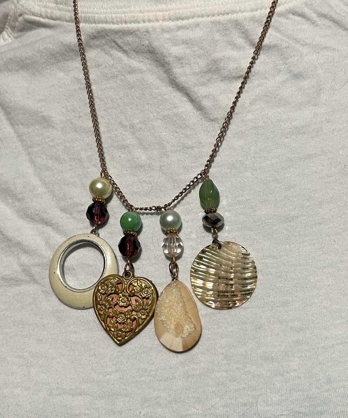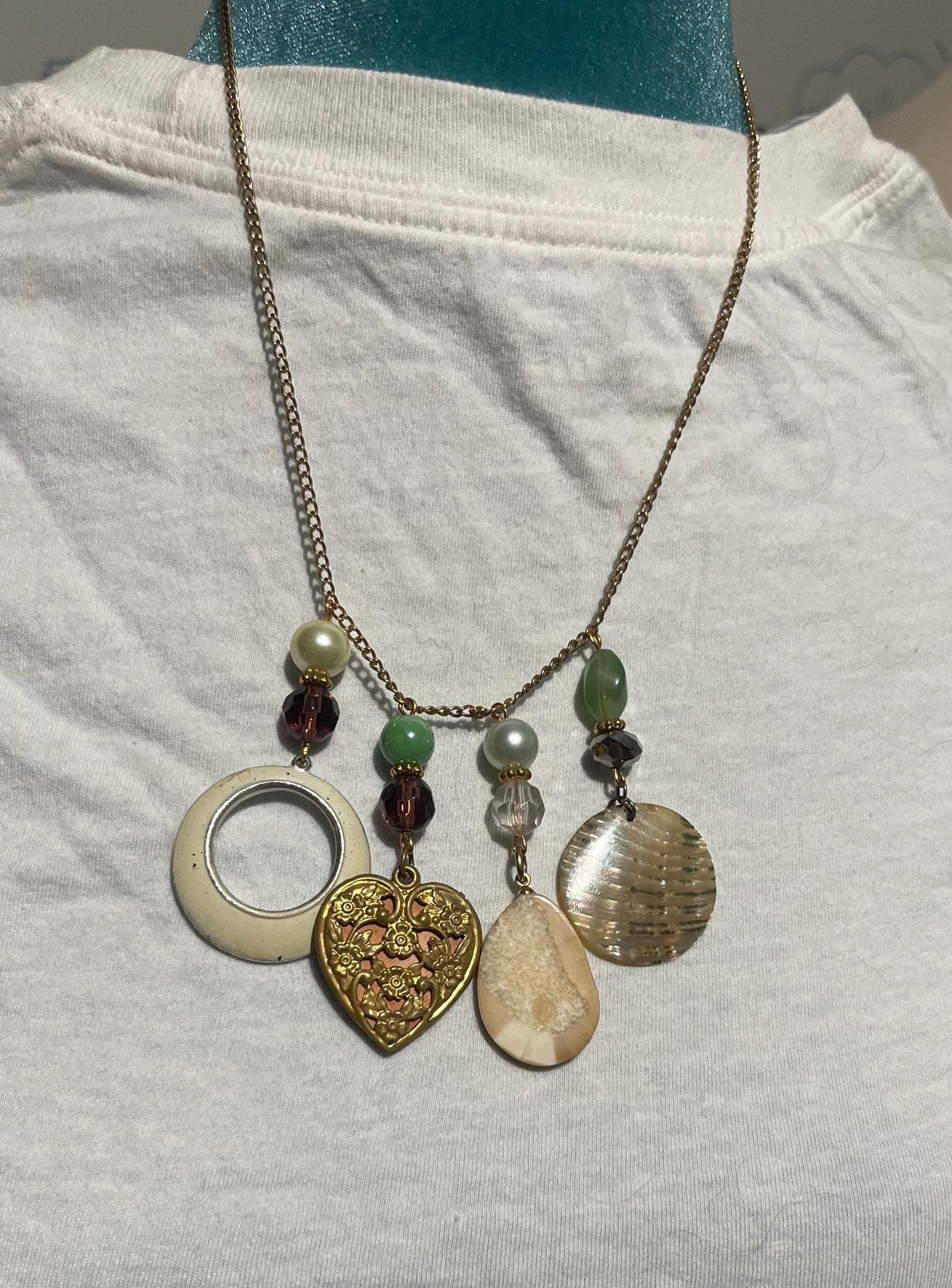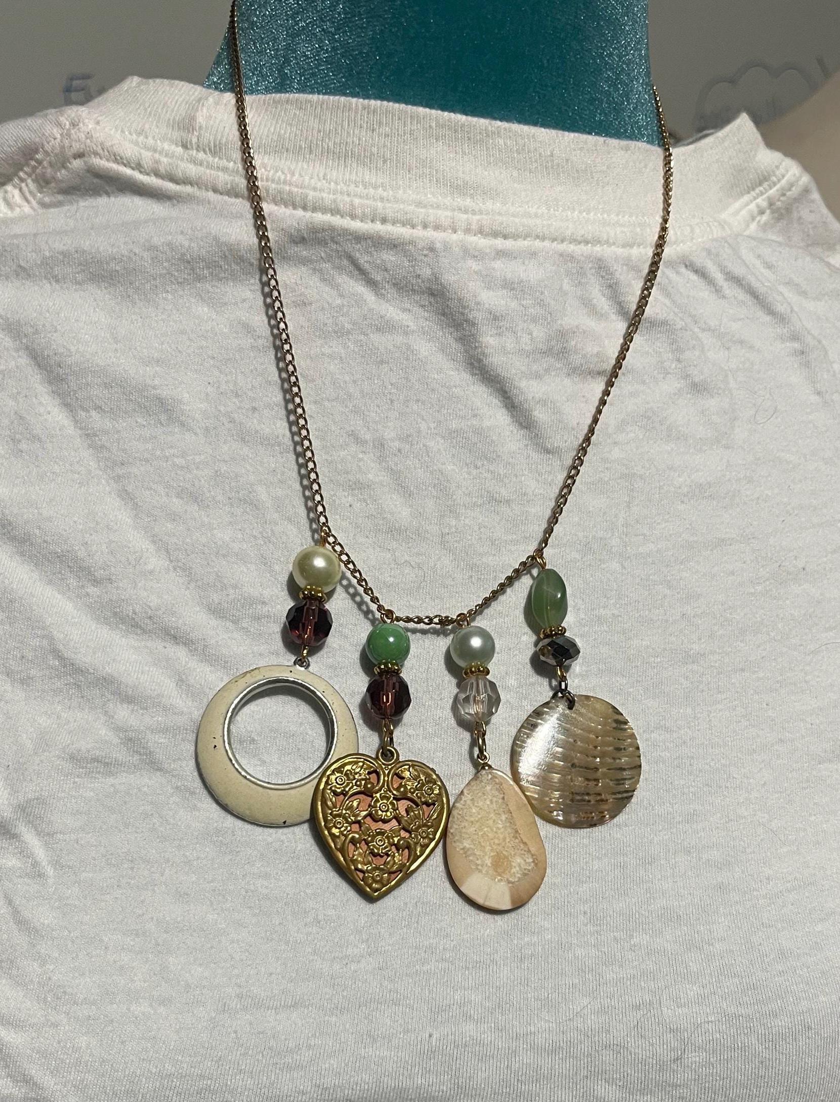 Don't just take my word for it, try it out for yourself and see how it transforms your look. So go ahead, treat yourself to this unique upcycled charm necklace and make a colorful statement wherever you go.